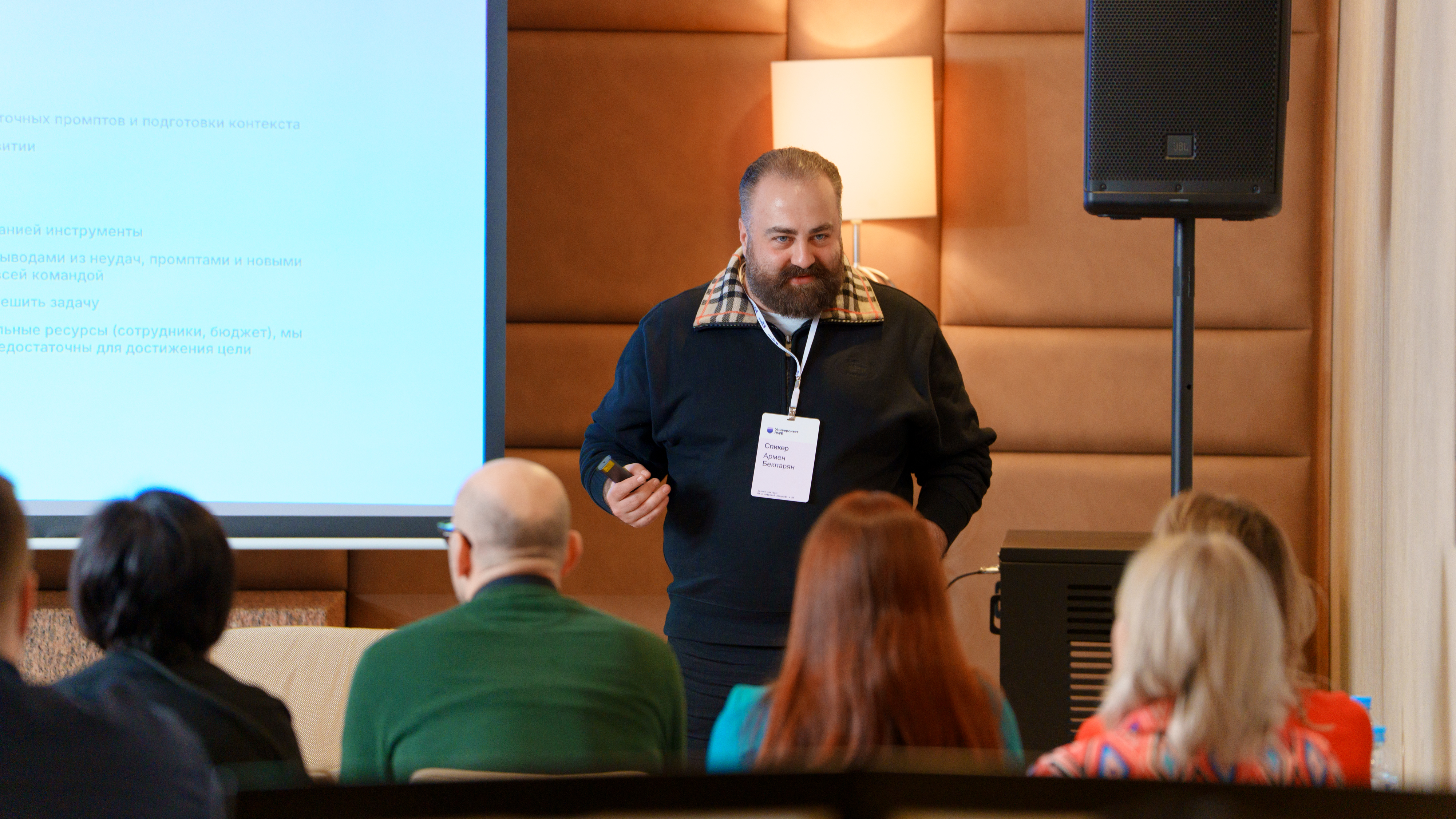 Участников мероприятия также ждала инсайт-сессия с Арменом Бекларяном — проректором по исследованиям и инновациям Университета RWB, доцентом Факультета компьютерных наук НИУ ВШЭ и экспертом в области data-driven управления и внедрения ИИ в бизнес. Он поделился практическими кейсами, как компании могут использовать ИИ для развития бизнеса и людей как его главного актива. Университет RWB уже успешно реализует программу по применению искусственного интеллекта для предпринимателей и готов предложить корпоративным клиентам индивидуальные решения с учетом особенностей их проектов и бизнес-процессов. Некоторые участники мероприятия уже обсудили перспективные форматы и планы дальнейшего взаимодействия с Университетом RWB.